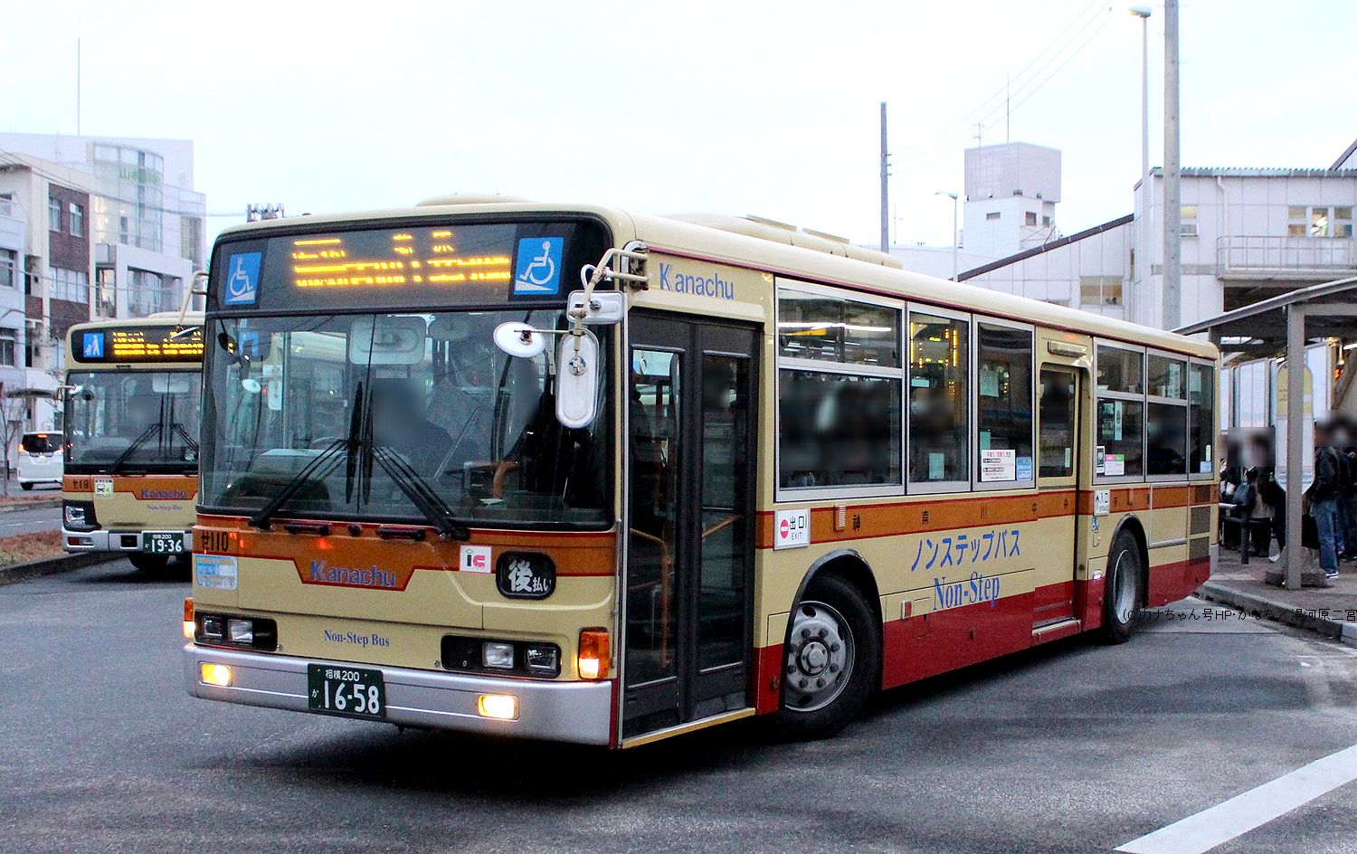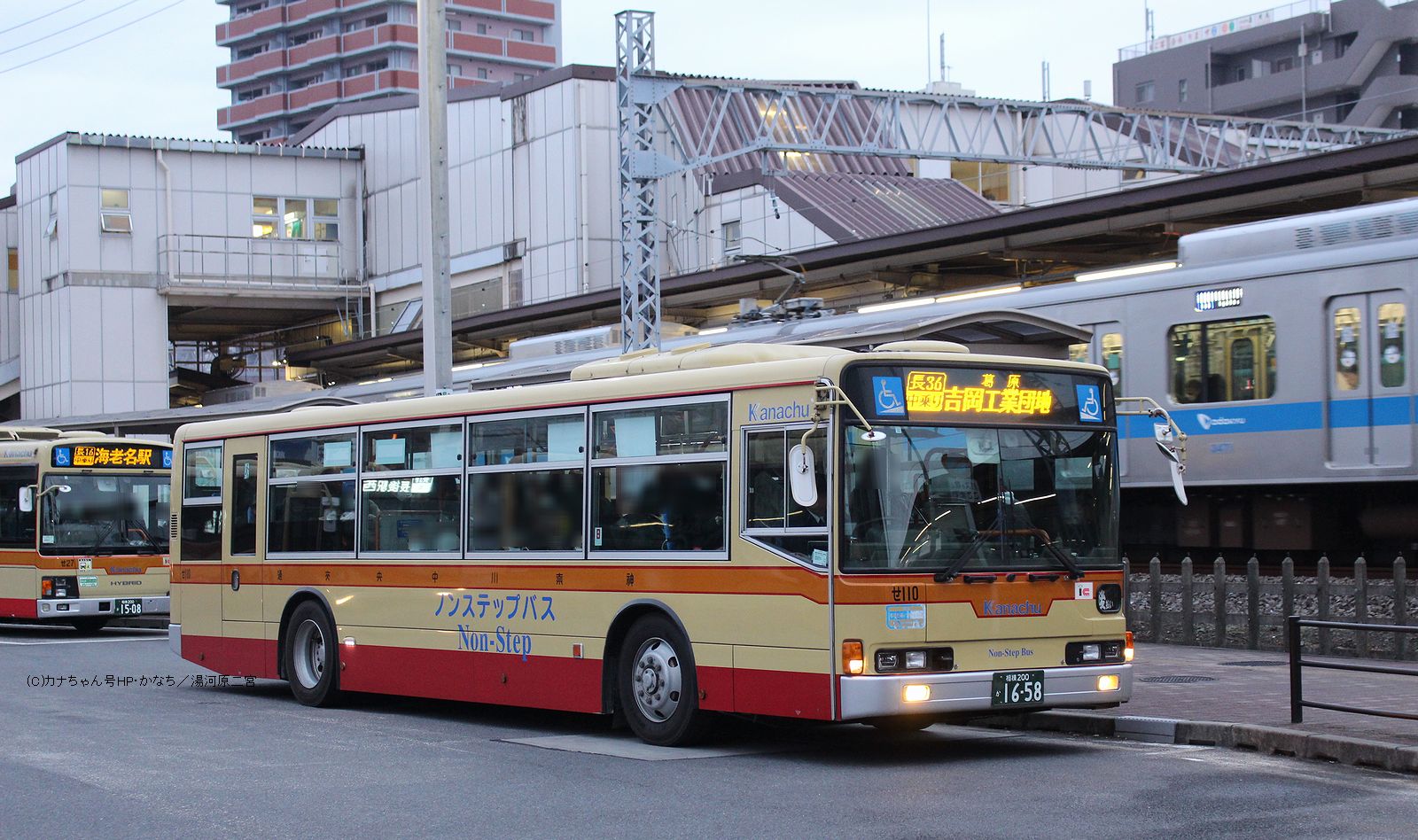 2006年12月投入のPJ-MP37JM(せ110)です。 3台が残存した綾瀬営業所のPJ-代ノンステップバスは写真の「せ110」のみが生き残り白色LED表示化改造が実施され活躍が続いています。 神奈中のM尺PJ-MP37もこの車のみとなりました。撮影 せいは様 |