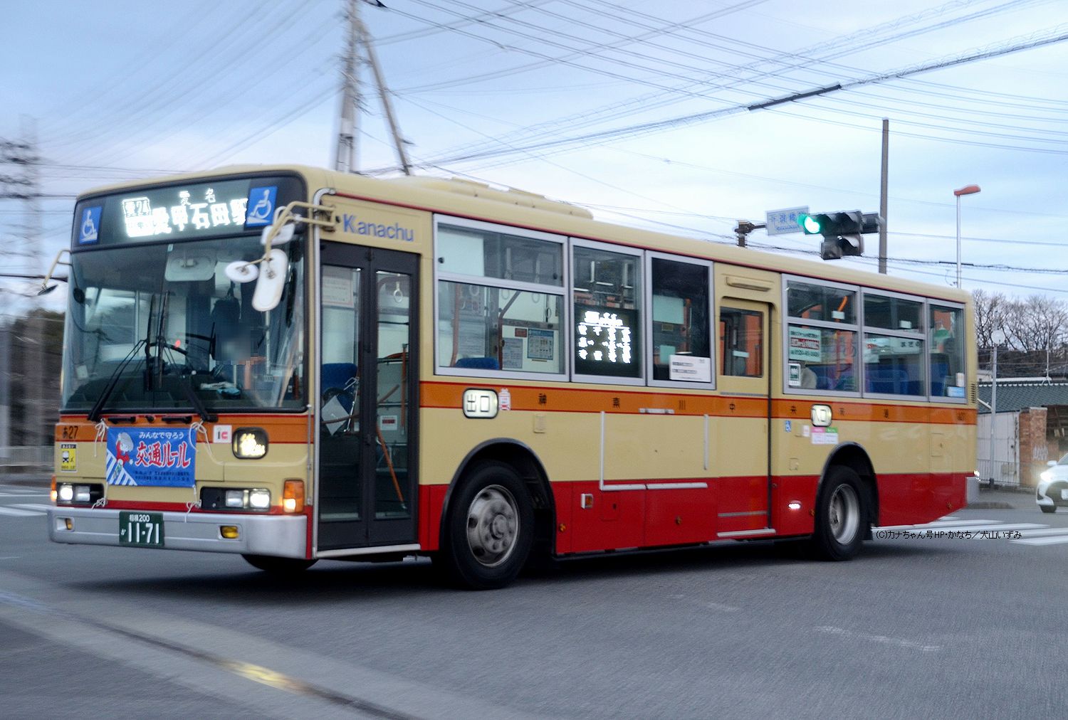 2016年8月投入のQKG-MP38FK(あ147)です。 厚木営業所のQKG-代MP38は2015年〜2017年式の計18台が在籍します。写真は【愛24】愛甲石田駅〜松蓮寺線に充当された際の様子です。 8月1日に厚木市地域公共交通会議が行われ、2026年3月予定での廃止の意向が示され同会議で承認されたため廃止が確定しました。 かつての【厚45】愛名経由小野→【厚45】愛名・愛甲原住宅経由愛甲石田駅線の名残りだった路線も残り半年で見納めとなりそうです。 「あ27」は2008年式のPKG-MP35UMワンステップバスで2022年に記録された【愛24】での写真です。撮影 犬山いずみ様 |
