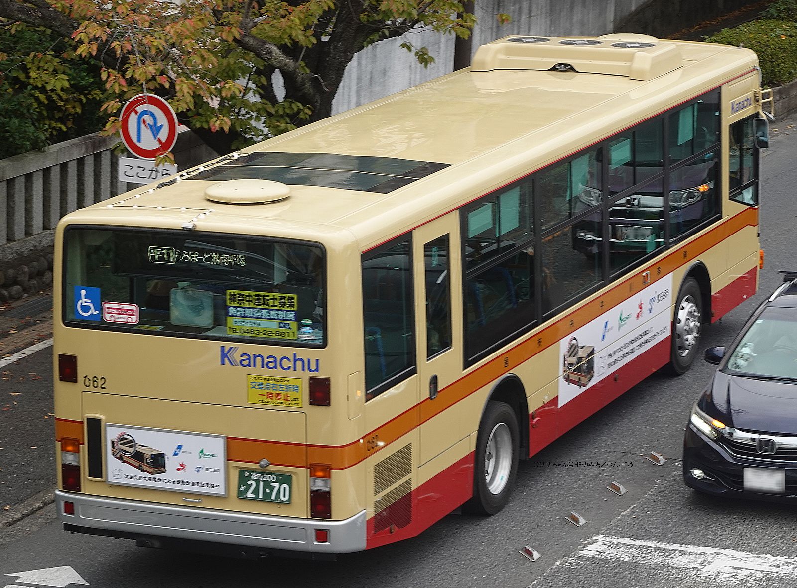 2019年1月投入の2PG-MP38FK(や31)です。 【海10】海老名駅東口〜立野台〜相武台前駅線で運行時の姿を海老名駅で捉えたシーンです。 海老名や相武台系統は1999年2月1日に当時の湘南神奈交バス大和営業所へ移管されてからは中型車による運行が続いていましたが、再び大型車の運行が見られるようになりました。 3・4枚目はほぼ同じ場所で1998年に記録された【海10】で懐かしの神奈中コーナーバス出張編、1999年まで担当していた厚木営業所時代の運用です(1998年下期 三菱KC-MP317M(あ57))。撮影 菅井隆行様  |