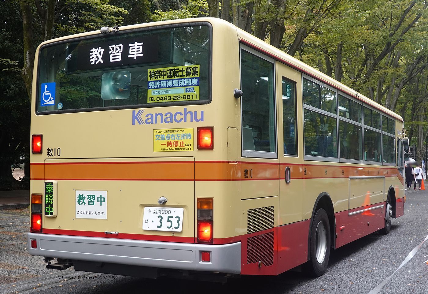 2009年4月投入のPKG-MP35UM(教10)です。 秦野営業所に在籍し教習車となっている1台で、2020年2月に舞岡営業所から転入しました。新製当初は横浜の「よ16」で2019年に舞岡へ移り教習車へ転用され「教10」として活躍、現在に至ります。 写真は2024年10月12日に平塚市の東海大学湘南キャンパスで開催された「TOKAIグローカルフェスタ2024」に神奈中も出展しグッズ販売のほか教習車の運転体験が実施されました。 最近ではかなみんや新カラーデザインバス、ポンチョ、三太号等がイベントに参加したケースはありますが、教習車の登場は初めてでしょうか。撮影 アメニティ様 |
