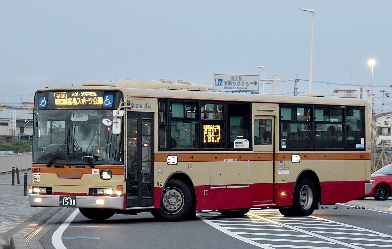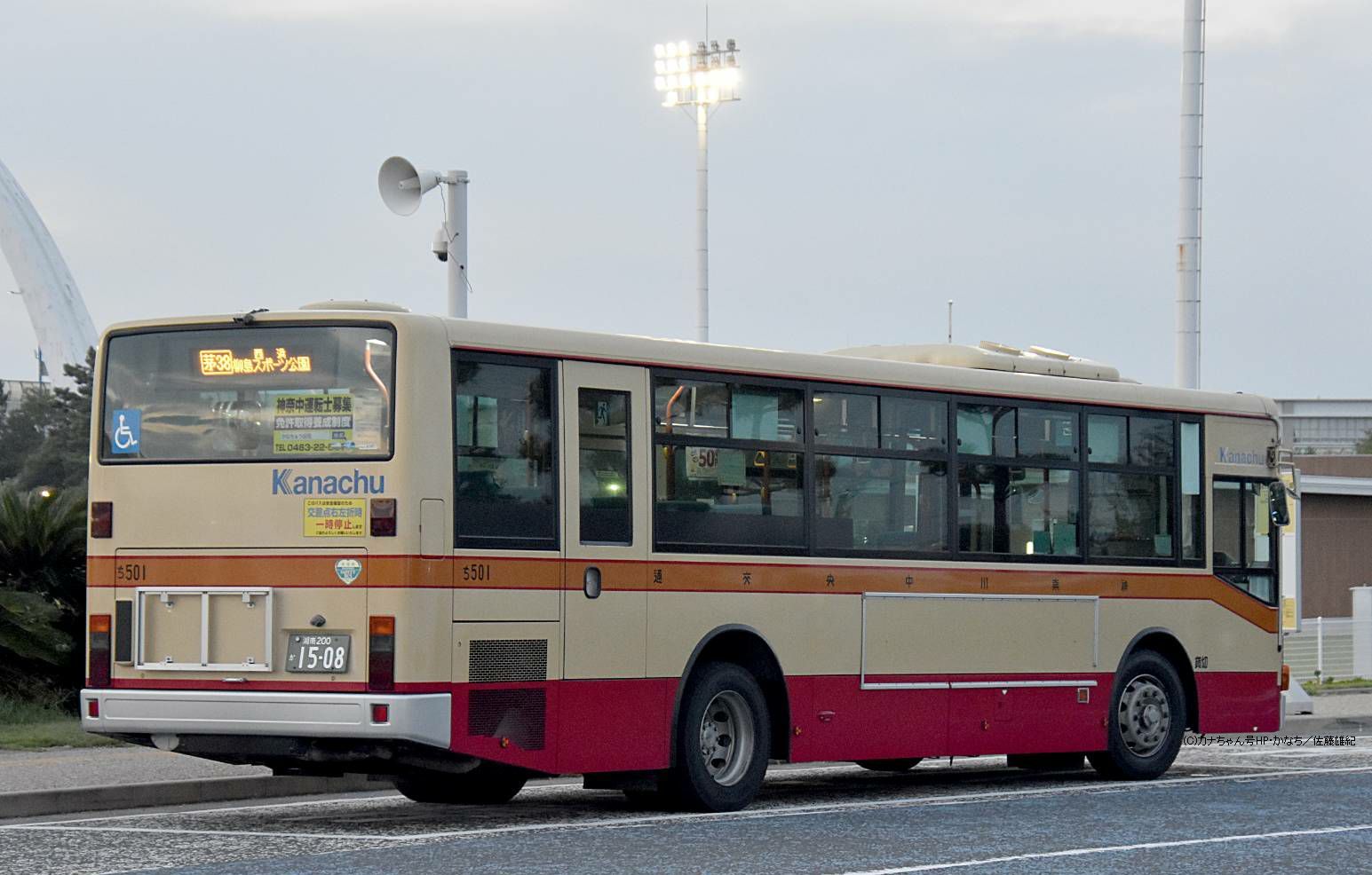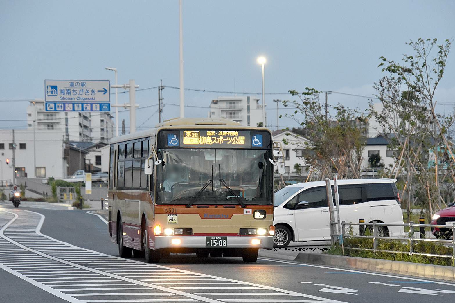 2011年3月投入のLKG-MP35FM(ち501)です。 茅ヶ崎営業所の貸切登録車で、2025年1月に行先表示が橙色となっている1台、やはり茅ヶ崎でもこの貸切車1台のみの仕様です。 写真は今年7月3日に新設された【茅38】柳島スポーツ公園線で運用時の姿で道の駅湘南ちがさき前も経由する路線です。撮影 佐藤雄紀様 |