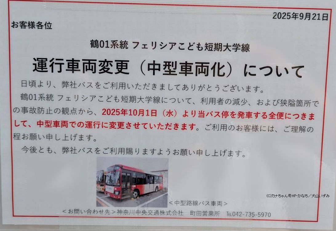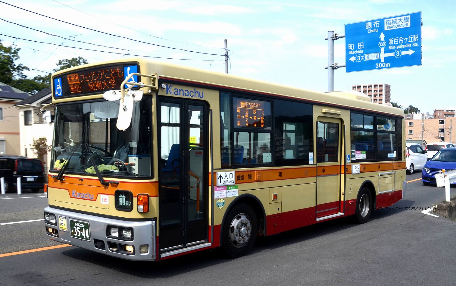 2008年6月投入のPDG-AR820GAN(ま501)です。 町田営業所では1台のみが在籍するエアロミディSで、2020年4月に横浜営業所から転入した1台で転入当初から貸切登録されています。 写真は、2024年3月16日ダイヤ改正を前に3月9日の運行をもって廃止となった、 ・鶴22 鶴川駅〜若葉台駅〜調布駅 ・柿26 若葉台駅〜柿生駅北口〜市が尾駅 ・柿27 若葉台駅〜柿生駅北口 にて運用された際の様子です。 2020年9月の運行からそれまでの休日ダイヤから土曜ダイヤへと移行され運行が続いてきました。 「ま501」はエルガミオ「ま81」の代走として、これまでも町03・町26・町31系統で僅かながら運行実績はあり、契約輸送の代走も務めていますが、 それ以外の路線での運行は今回が初めてと思われ、特に今回廃止となった3路線については最初で最後の運行となりました。 2023年11月にオレンジ色で3mm〜5mm厚程度のアクリル板を被せることでLED行先表示色を変えています(機器そのものは白色)。撮影 犬山いずみ様 |