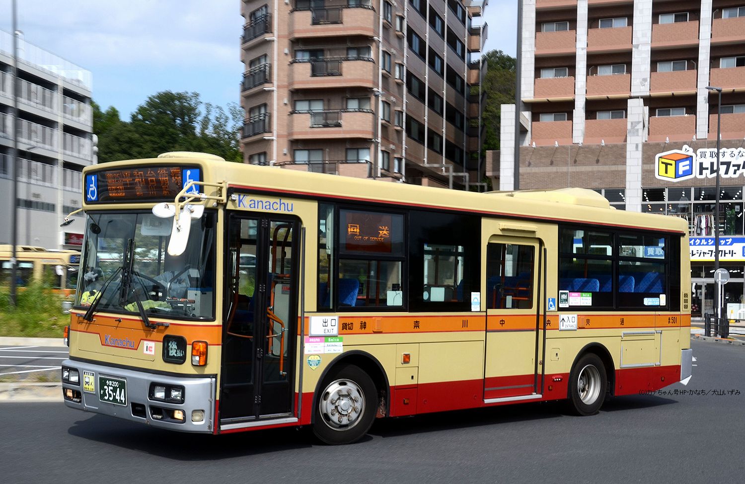 2008年5月投入のPDG-AR820GAN(ひ 64)です。 平塚営業所には1台のみが在籍するエアロミディSが、平塚駅南口系統で運行された際の様子です。普段は金田公民館やあかね台循環がメインの印象ですので、かつて南口で中型車が多く運用されていた湘南神奈交バス時代を思い出します。撮影 アメニティ様 |