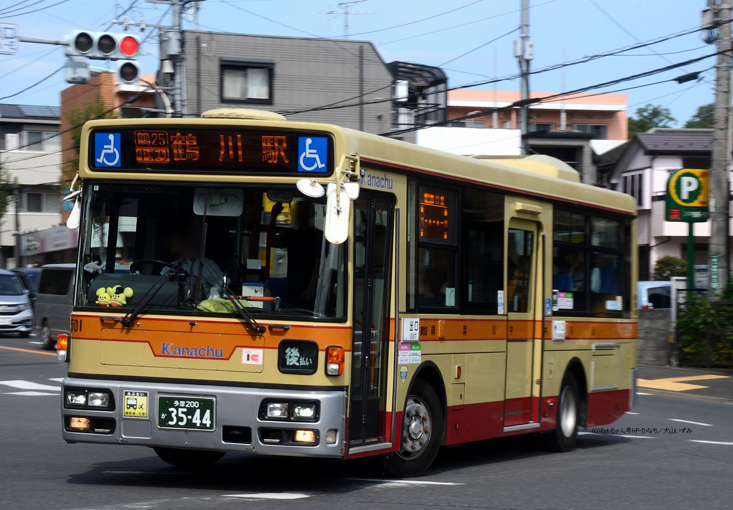 2008年5月投入のPDG-AR820GAN(ま501)です。 町田営業所の貸切登録車で、町田には1台のみが在籍する型式です。 この10月1日ダイヤ改正から【鶴01】鶴川駅〜フェリシアこども短期大学線が中型車による運行となりました。 既に2024年3月16日ダイヤ改正から鶴川駅系統へ進出していますが、今のところ平日に関しては「ま501・ま81・ま120」と町田の中型車が3台共フル稼働になっています。 写真は今回改正直前の記録で、改正以降も平和台や緑山、千都の杜、やくし台方面でも中型車の姿が見られます。撮影 犬山いずみ様 |