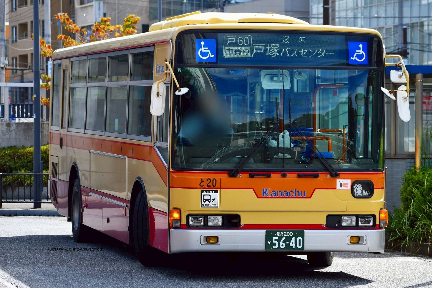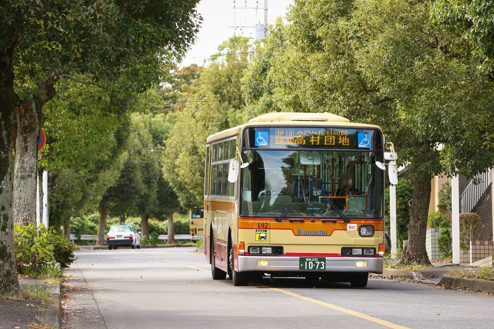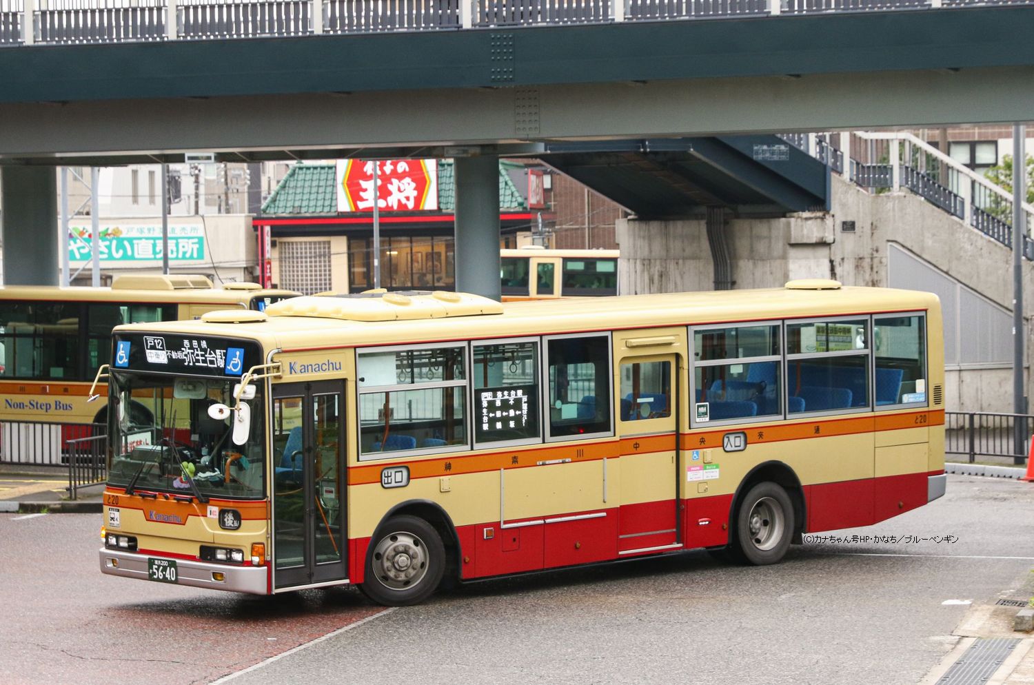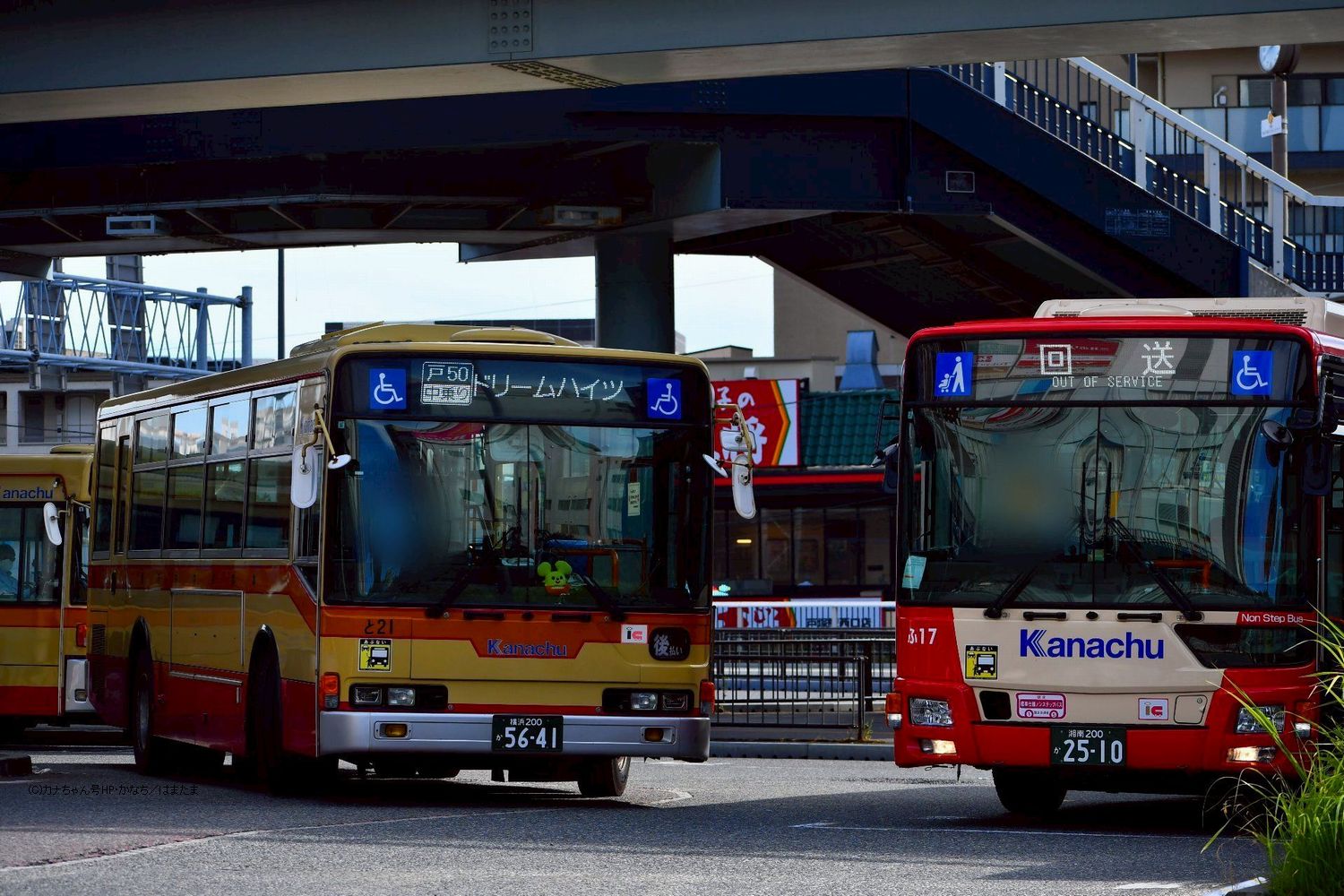 こちらは元YAMATE LINER仕様の「お98」です。登場から2ヶ月ちょっとで「KANACHU BUS」ロゴへ変更されています。基本的に11・60系統の運用はYAMATEロゴ仕様に譲っていますが、現在も時々運用に入ります。 |