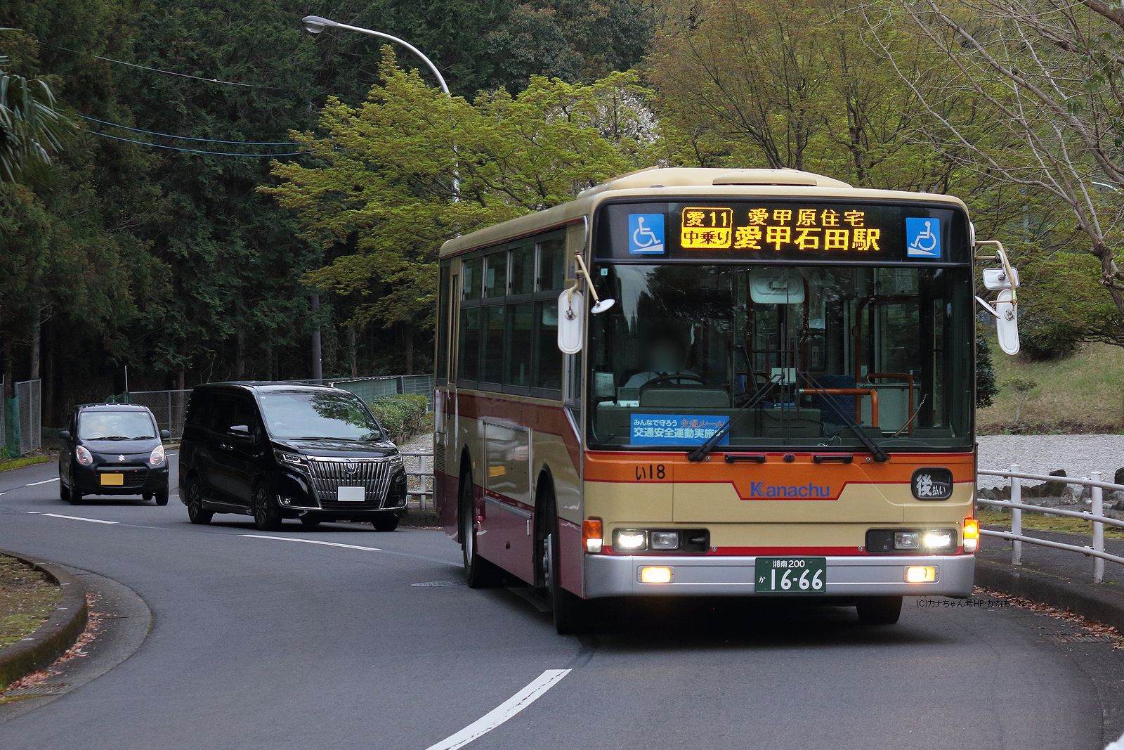 2007年5月投入のPJ-MP35JM(い12)です。 【愛12】系統の神奈川リハビリ行は2021年2月22日に新設されました。 新設ではありますが愛11七沢病院行の終バスを途中止まりとした路線のため、神奈川リハビリ以降が減便となりました。 また、普段の愛11・愛12は主にエアロスターS「い83・い88」ノンステップバスによる限定運用のため、ワンステップバスでの運行は珍しいです(代走は専らMP38)。撮影 はまたま様 |