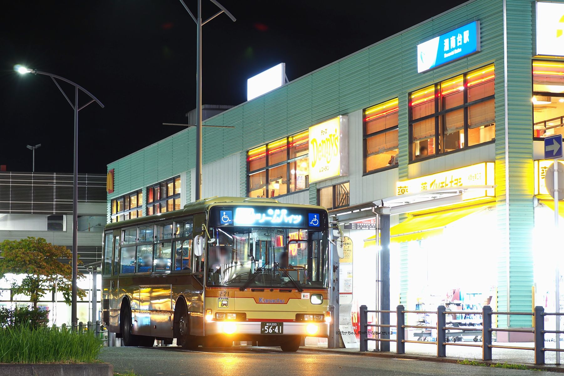 2005年12月投入のPJ-MP35JM(ち52)です。 2023年7月に平塚営業所から転入した1台で茅ヶ崎では最古参車となっています。 転入時こそ稼働率が低く状態が危ぶまれましたが、現在はバックカメラや新型ドラレコも搭載し元気な姿を見せてくれています。 写真は夜の茅ヶ崎駅や湘南台駅で【湘11】系統運用時の姿、明るく輝くフォグランプが印象的です。撮影 犬山いずみ様 |