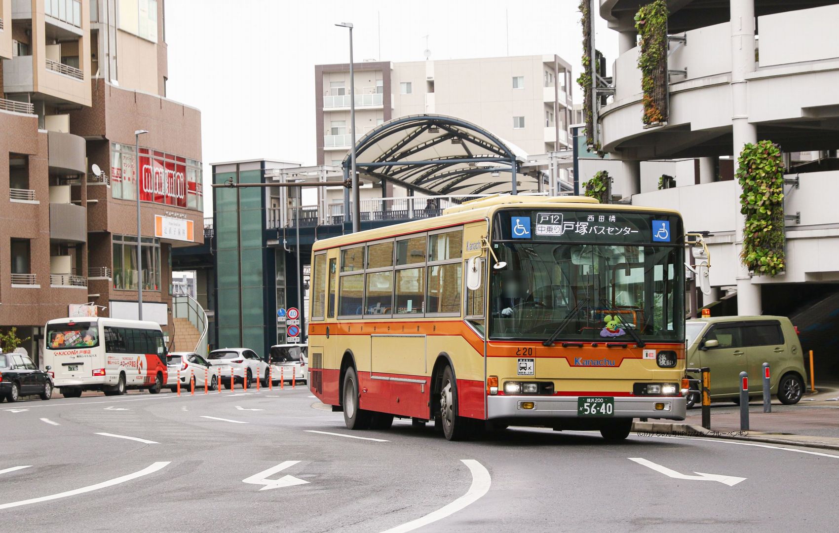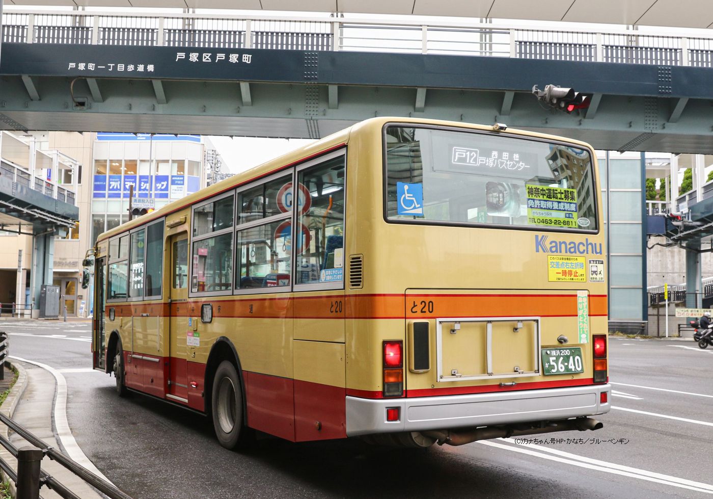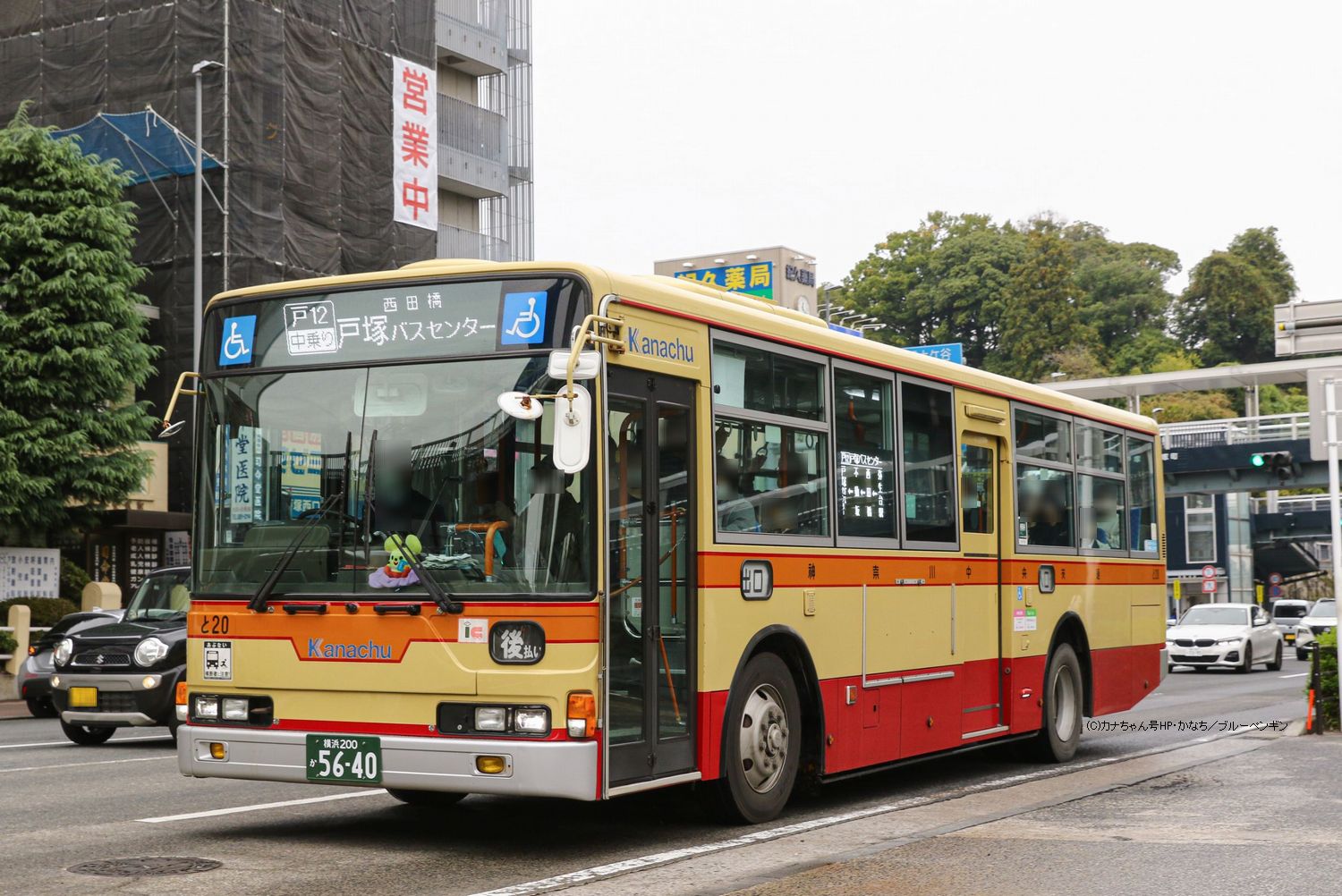 2007年3月投入のPJ-MP35JM(お 136)です。 「KANACHU-BUS」カラーのワンステップバスで、新製当初はYAMATE LINER仕様だった車です。 舞岡営業所へ12台が配属されましたが、KANACHU-BUS仕様は舞岡に8台、秦野の運転訓練車で1台が在籍します。 写真は【戸45】系統 戸塚駅東口〜桜木町駅前線運用時の姿です。こども医療センターや南区総合庁舎前を経由しますが、現在は平日日中に2往復が運行されるのみの系統で、2016年の新設当初は9往復が設定されていました。撮影 とも交通様 |