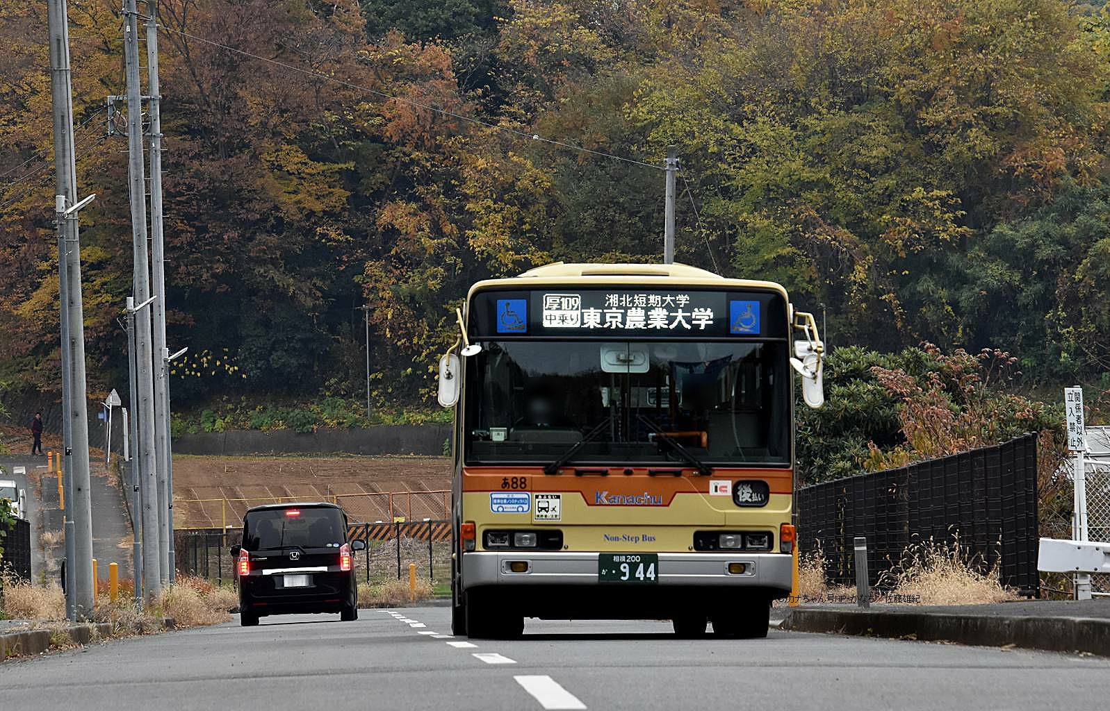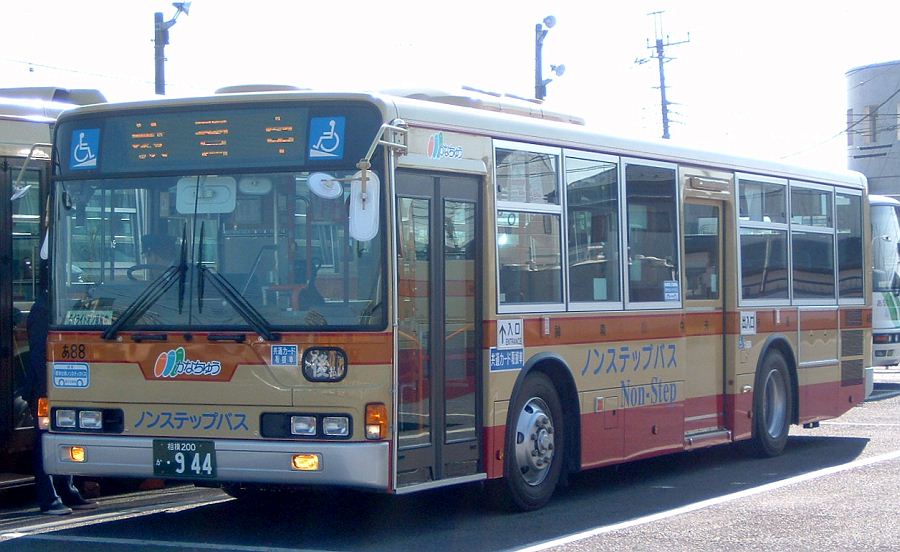 2006年12月投入のPJ-MP37JK(あ88)で、厚木には3台が投入されたノンステップ車です。写真は相模神奈交バスの教習中の様子でLEDにも「教習中」の文字が表示されています。撮影 平社員様 |