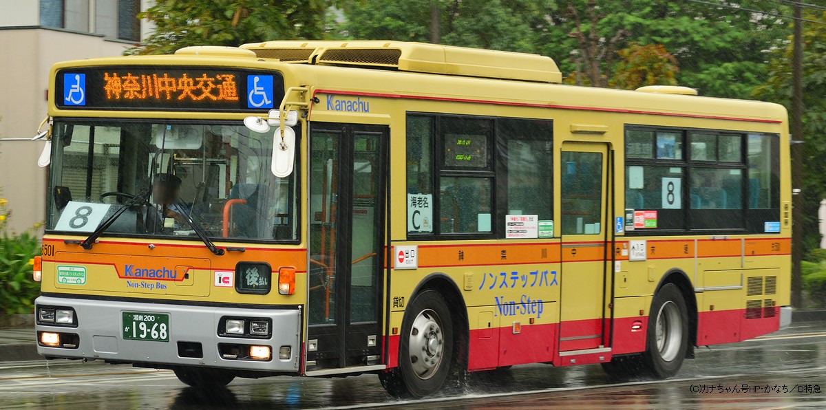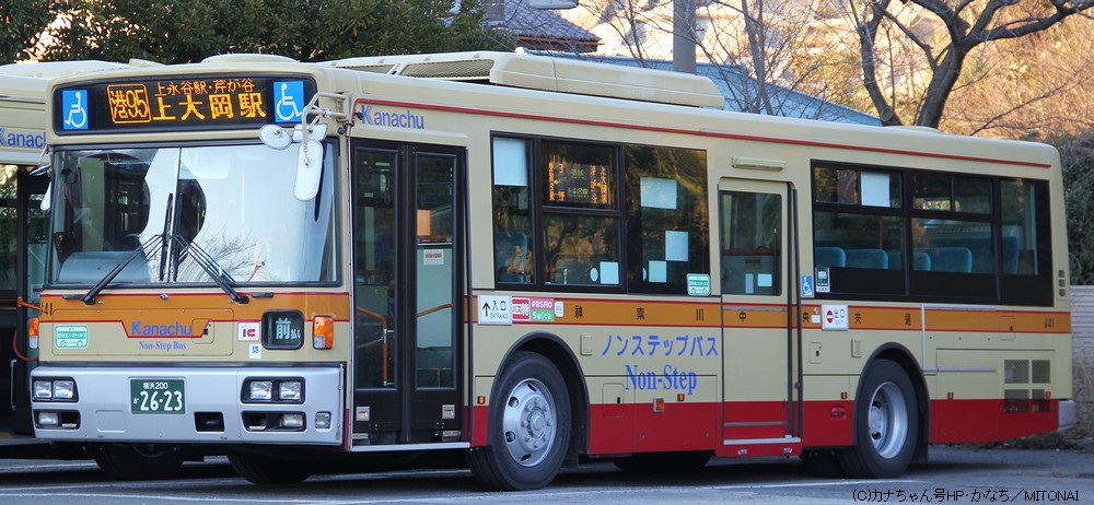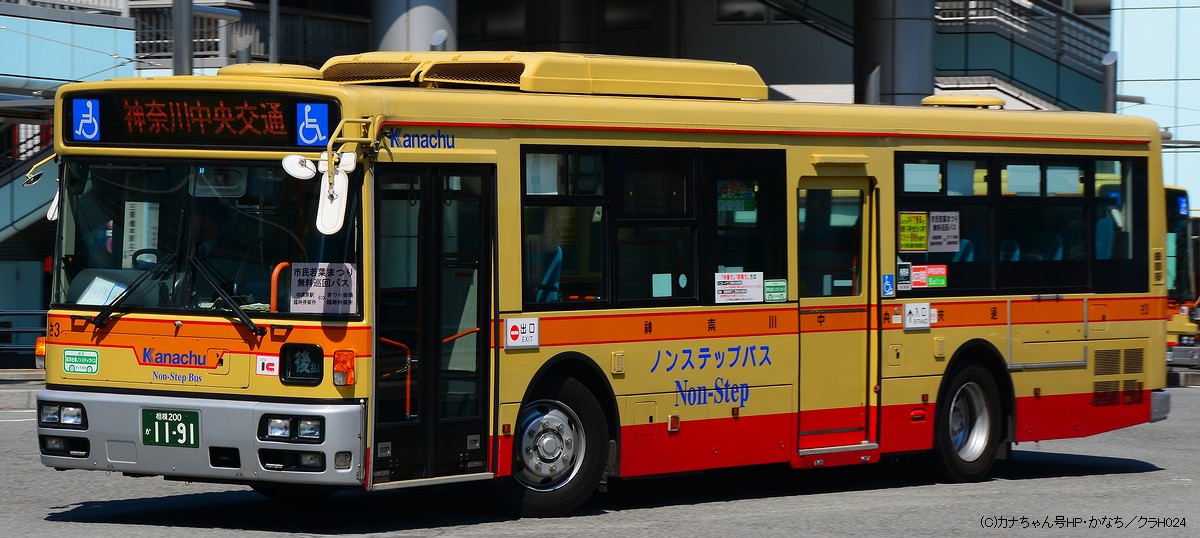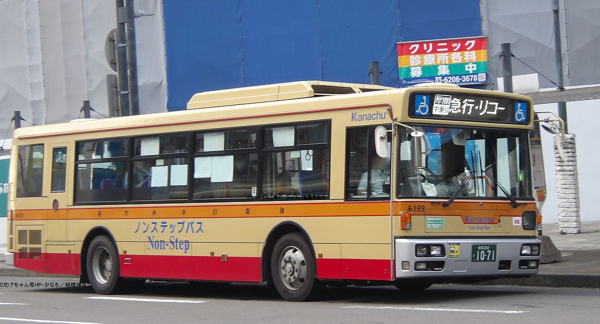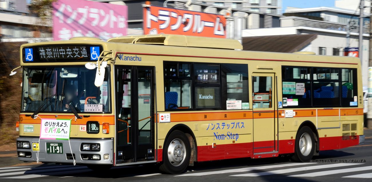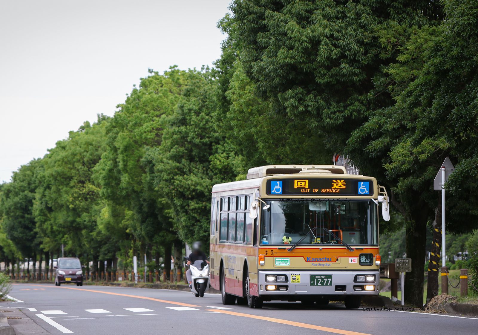 2008年10月投入のPKG-AA274KAN(い88)です。2015年10月に舞岡から転入した車で(元お0172)、同型は「い83、い88」の2台となり2001年式のエルガが引退しています。い88は運行初日となった10月6日から愛11系統 七沢病院線での運用が続いており、い83も運行初日は平塚駅方面へ平86系統等で運用されたものの、現在は愛11に固定されています。 |