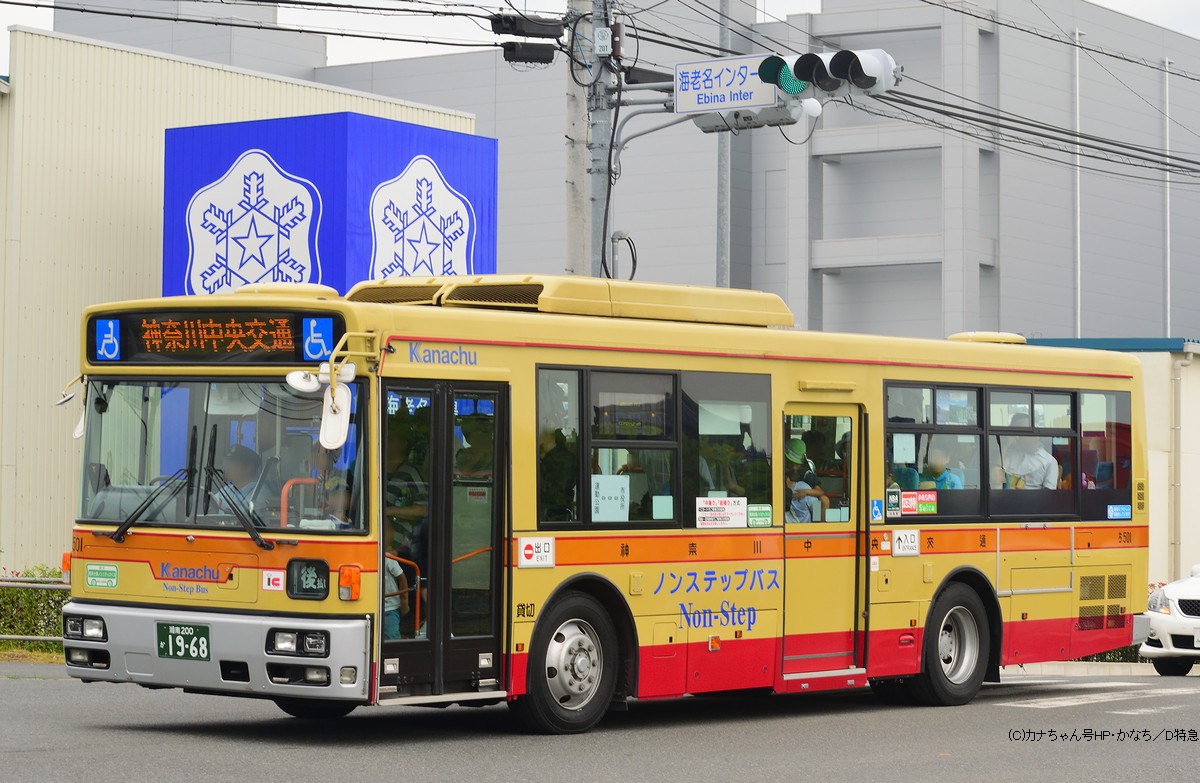 2008年1月投入のPKG-AA274KAN(あ189)です。 本厚木駅で待機中で【厚108】急行・リコー線に運用された際の様子です。 平日の朝晩に運行される路線ですがほぼ契約輸送といった形で一般乗車可能は一部区間のみ、時刻表・運賃案内サイトやバスロケも非対応です。撮影 相模神奈交様 |