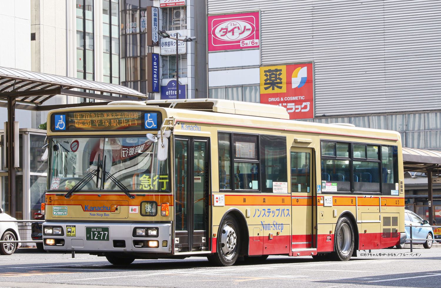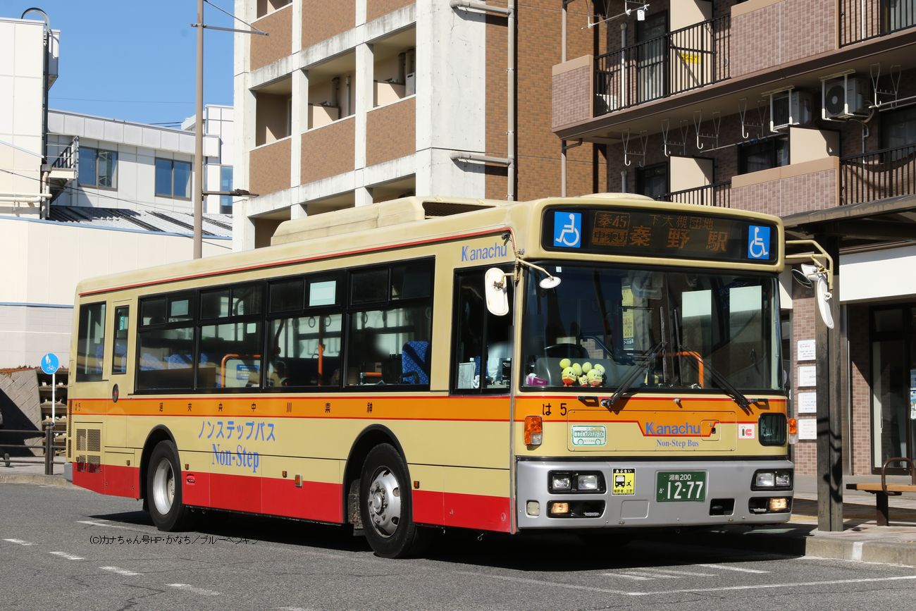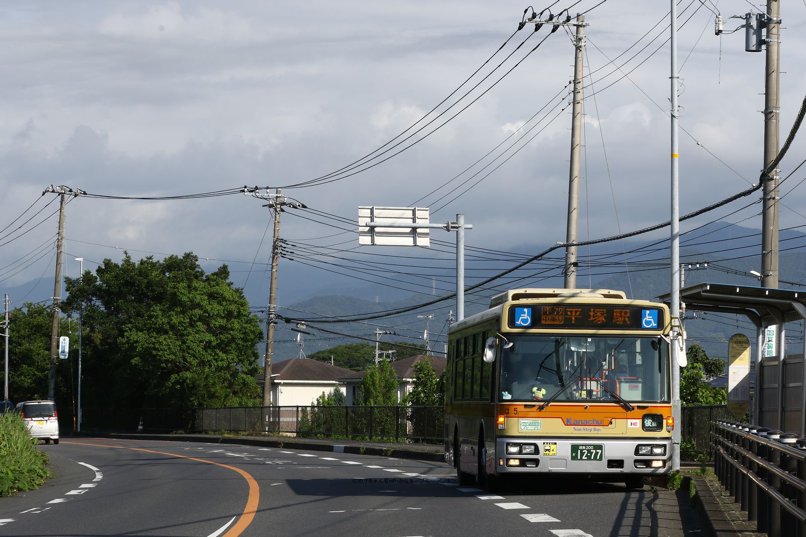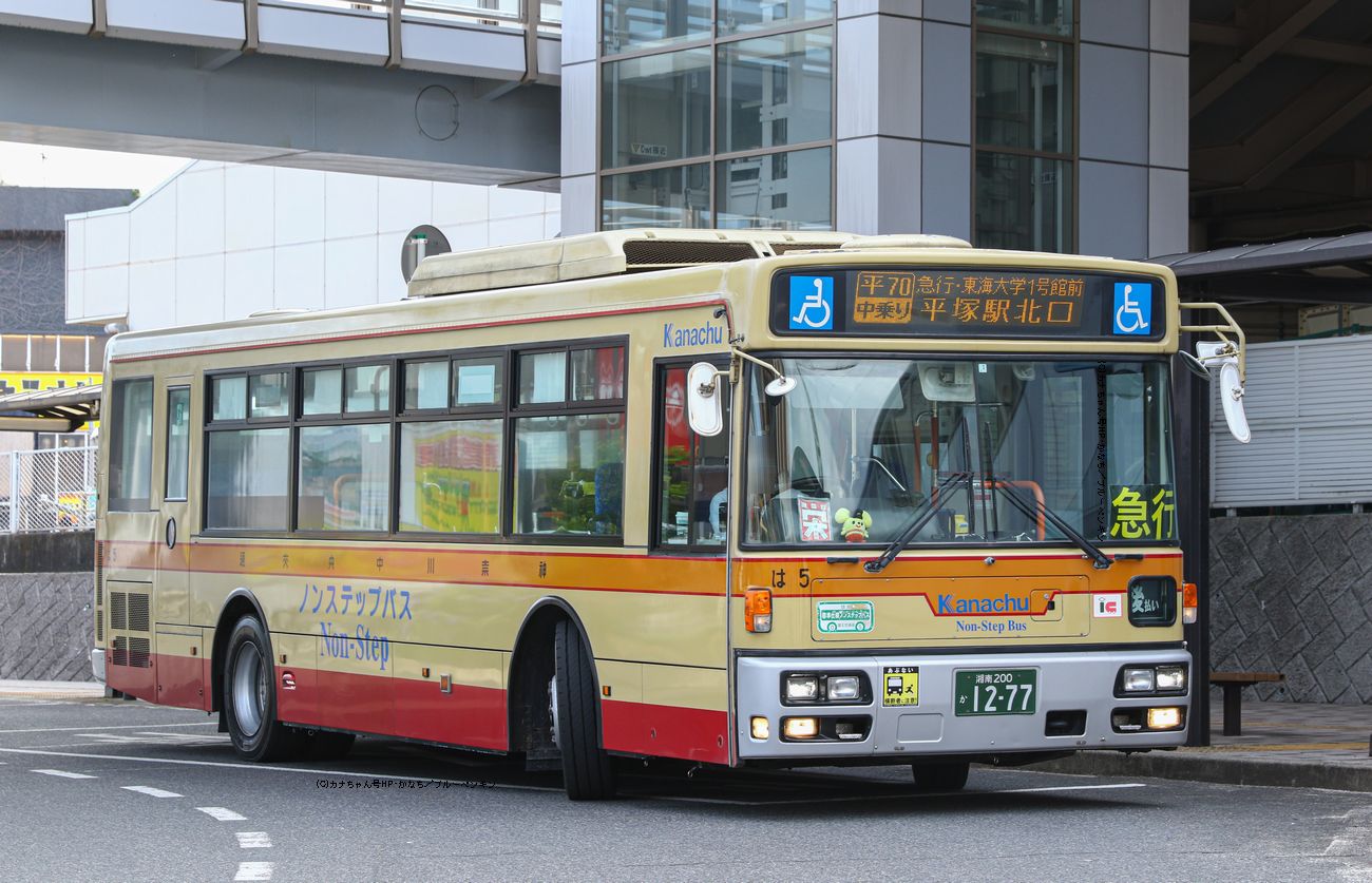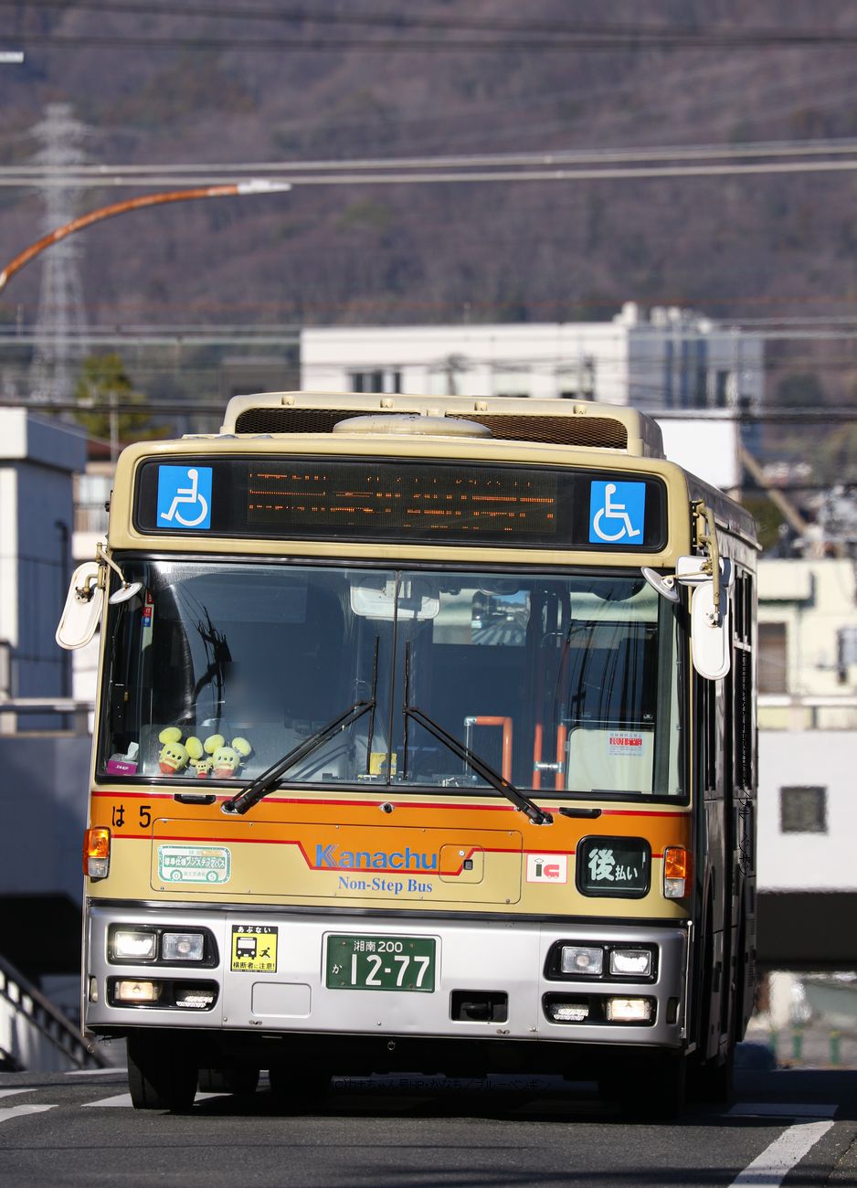 2009年1月投入のPKG-AA274KAN(は 5)です。 秦野営業所のエアロスターSは2台のみが在籍し、もう1台の「は 51」は2008年式、写真の「は 5」号車は神奈中のAA274としては最終増備のグループです。 新製時は湘南神奈交バスへの管理委託車だったため「は05」号車でした。 写真は平塚駅前での記録で【平77】系統の東海大学線です。撮影 ブルーペンギン様 |