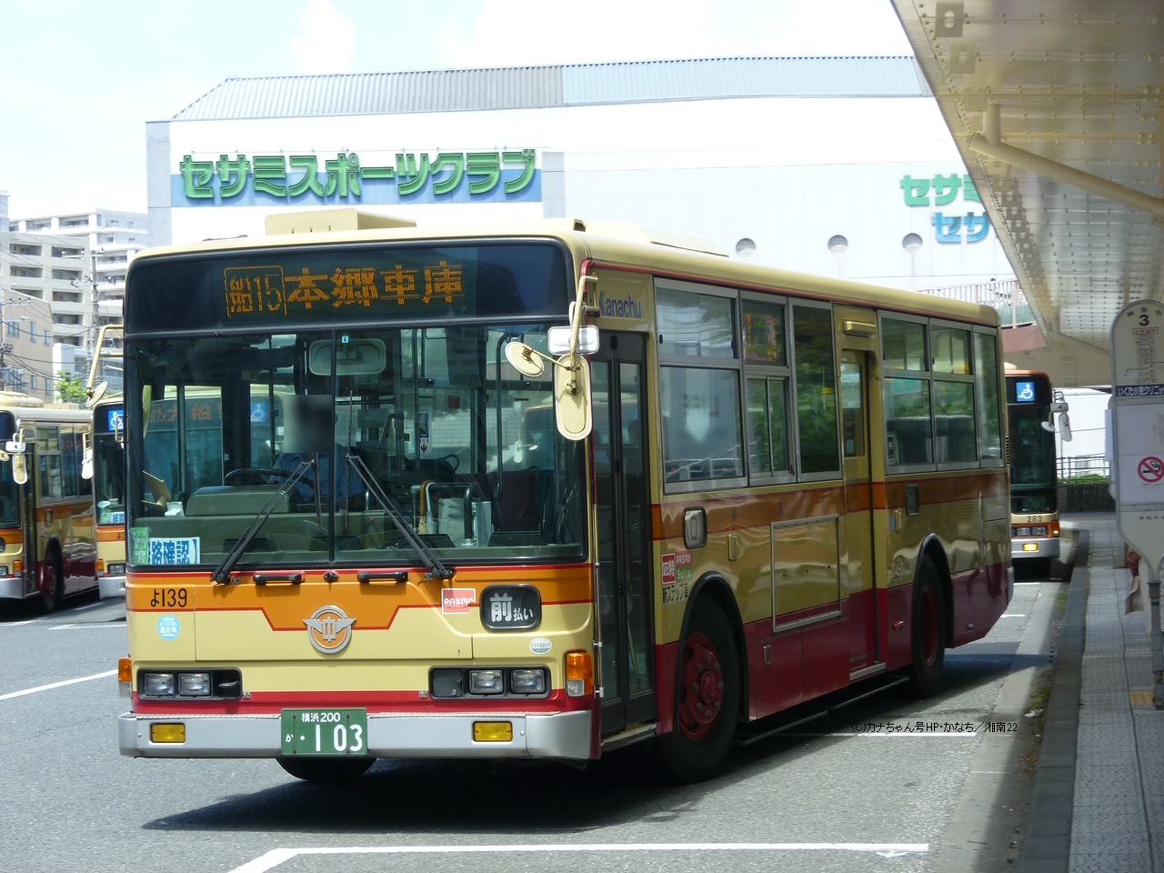 2000年6月投入のKL-MP33JM(い40)です。2006年12月に横浜から転入した1台です(元よ130)。 横浜時台に三菱地所など3回のラッピング契約履歴があり、その名残りで前ドア上に「かなちゅう」ロゴが貼られたままの姿が見られます。 写真は平塚駅付近で平93系統の伊勢原車庫行運用時です。撮影 綾瀬師匠様 |