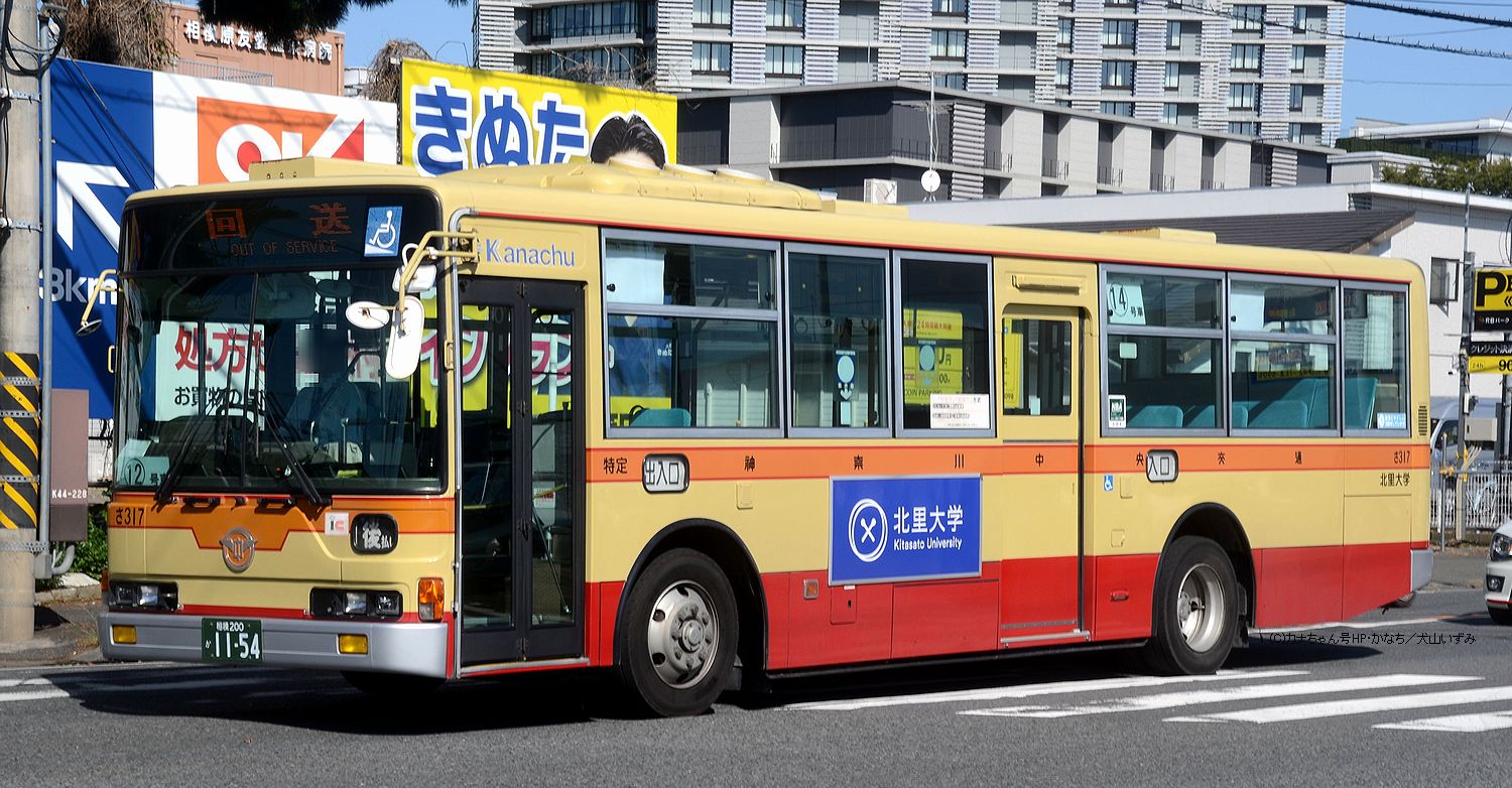 駅前で待機する2002年11月投入の三菱ふそうKL-MP35JM(や601・や602)です。 大和に2台が在籍するノンターボ仕様のエアロスターで、藤沢神奈交カラーを保っています。 相次ぐラッピング化や引退を迎える車が続いたため、この時点では神奈交カラーもあと僅かとなっていました。 その後、2017年3月に引退しています。撮影 わんたろう様 |