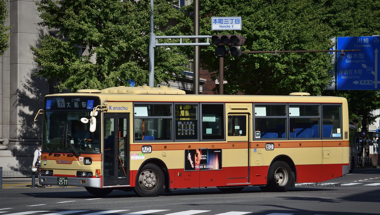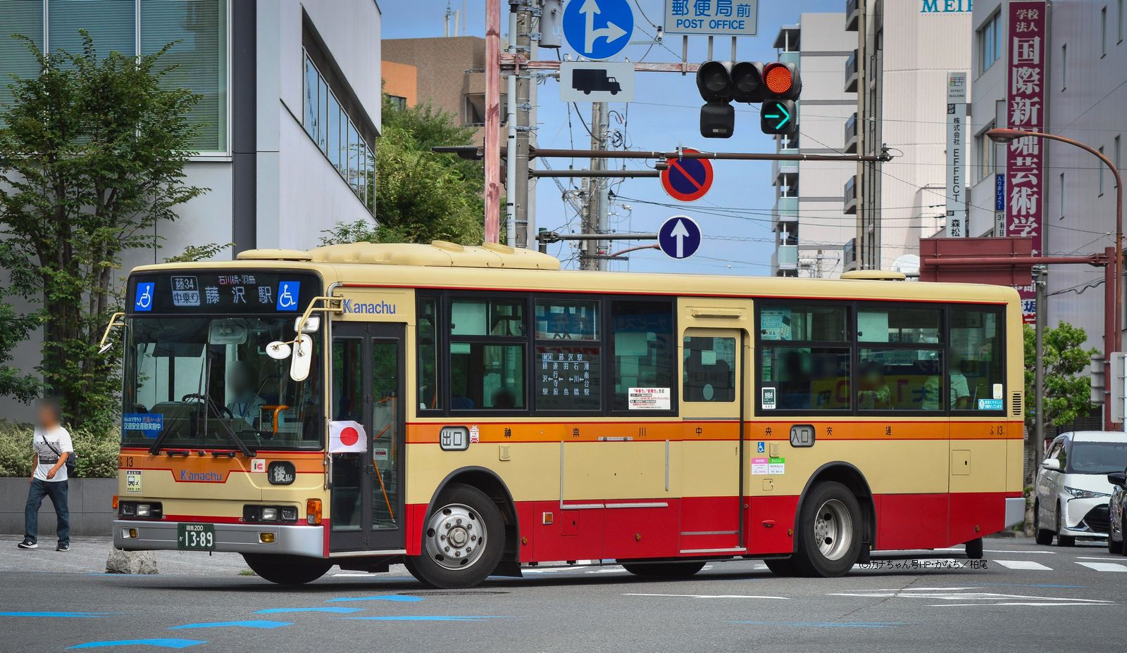 2007年10月投入のPKG-MP35UM(ち55)です。 神奈中では最初期のPKG-代のワンステップバスで、日産ディーゼル製のMD92TJエンジンを積み、尿素SRCシステムを搭載します。 新製配置は大和営業所で多摩を経て茅ヶ崎には2012年8月に転入しました(元や72→た12)。2025年5月に引退。撮影 はまたま様 |