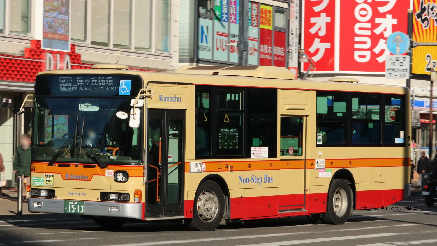 2013年2月投入のQKG-MP37FK(あ1)です。 厚木営業所には2013年と2014年登録の計5台が在籍します。写真の車は2014年6月〜2019年4月まで初代かなみんのラッピングバスでした。前面車いすマークも1枚のみです。撮影 湘南22様 |