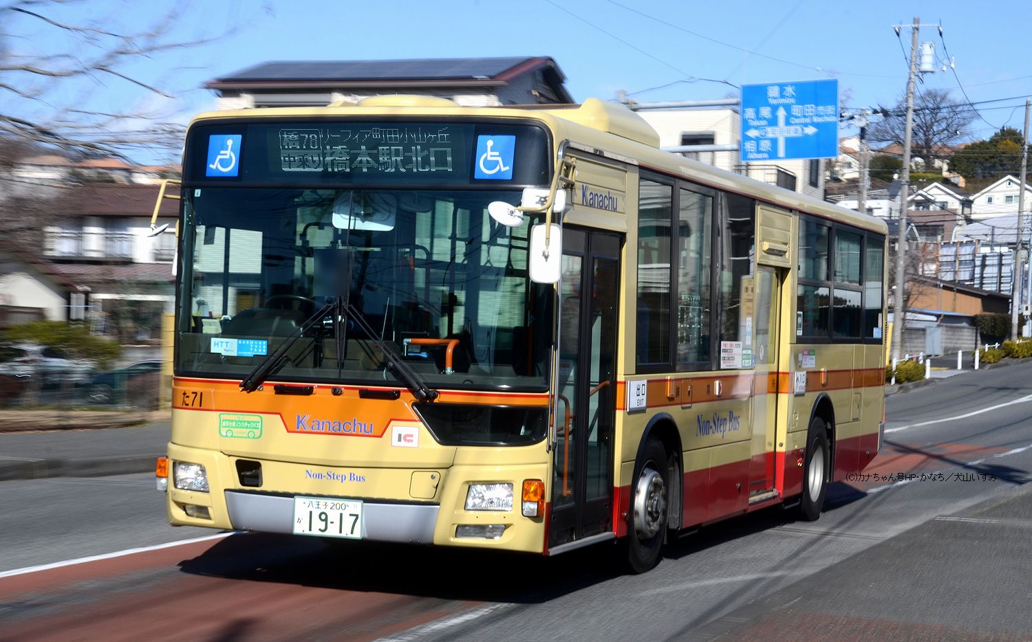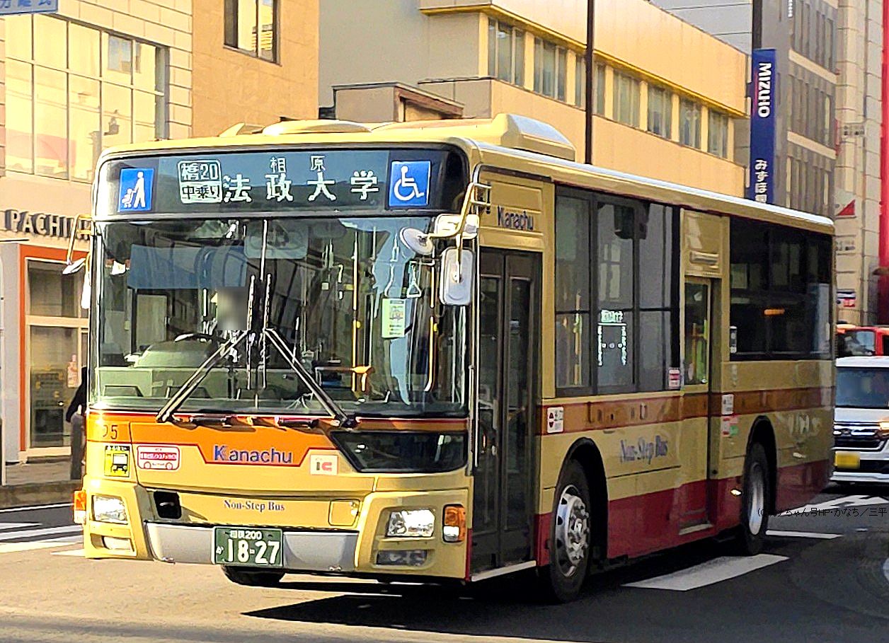 2017年1月投入のQKG-MP38FK(つ5)です。 【橋20】橋本駅北口→相原経由→法政大学行で運用時の場面です。2021年4月1日改正から平日7:43発の1本のみの運行となっている路線で同改正では橋本駅行が廃止されています。相原駅西口を通らない路線です。撮影 三平様 |