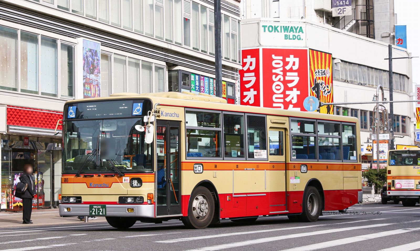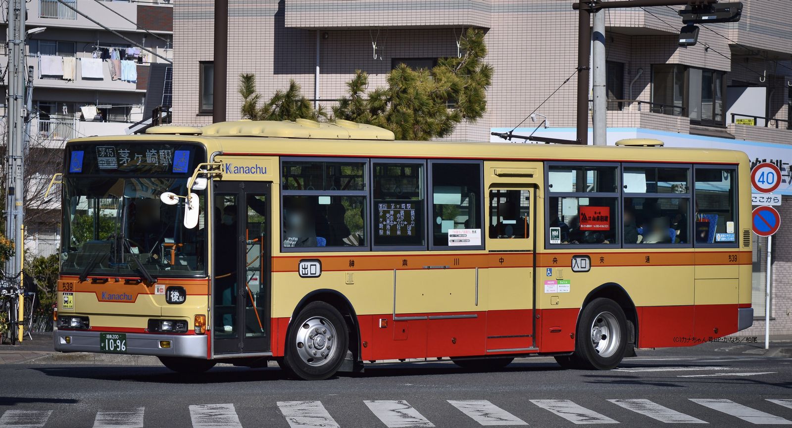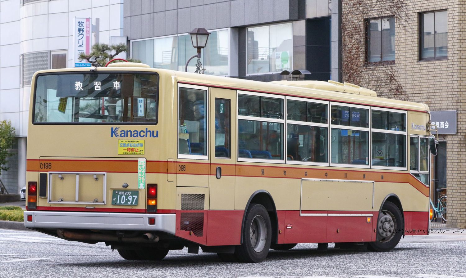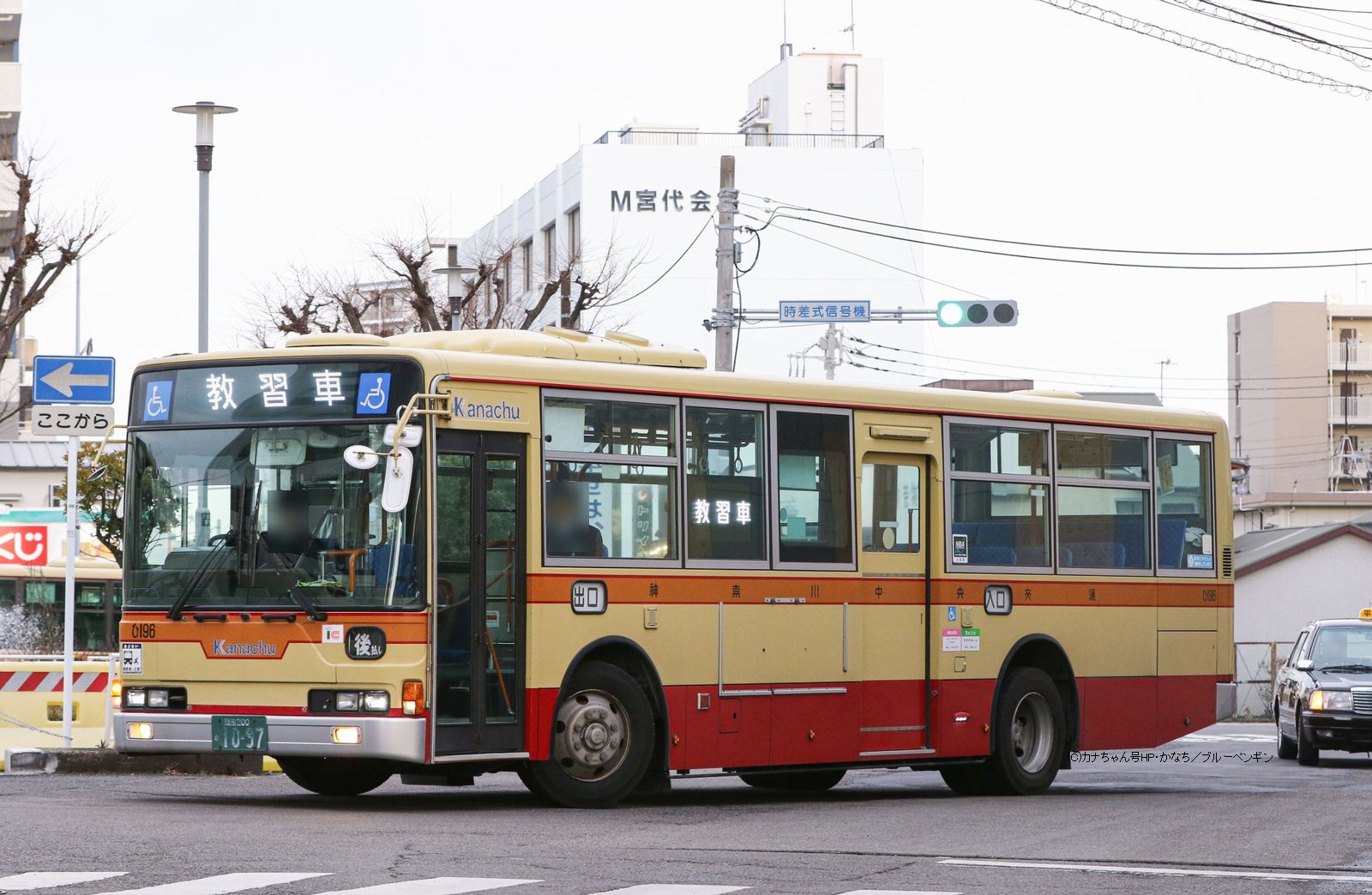 こちらは元YAMATE LINER仕様の「お98」です。登場から2ヶ月ちょっとで「KANACHU BUS」ロゴへ変更されています。基本的に11・60系統の運用はYAMATEロゴ仕様に譲っていますが、現在も時々運用に入ります。 |