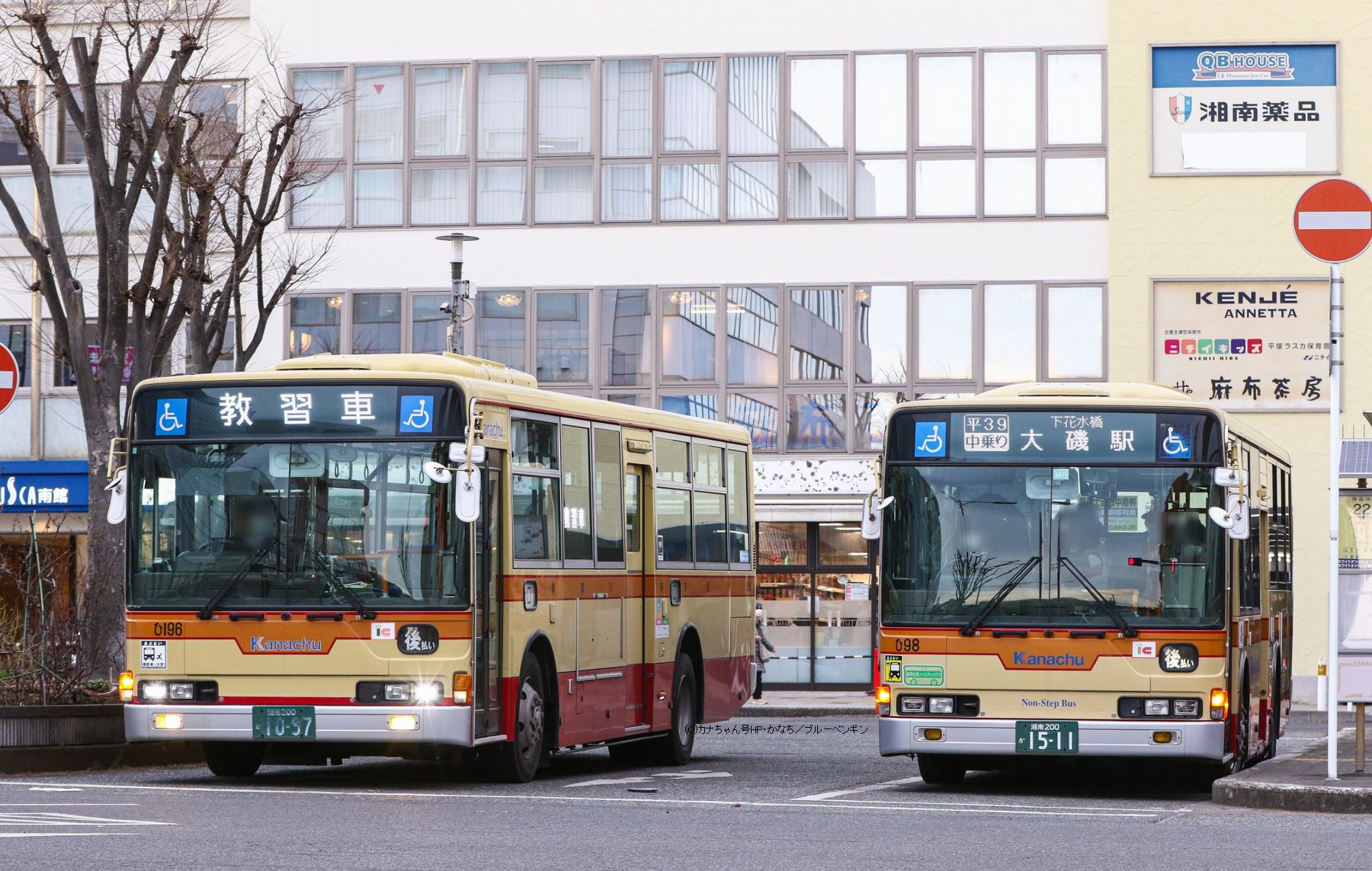 2007年7月投入のPJ-MP35JM(ひ195・ひ196)です。 4月1日の会社再編で神奈川中央交通西から神奈川中央交通へと移籍したワンステップのエアロスターです。 東西600番台の社番区分も廃止されましたが、平塚営業所の乗合登録車は7台が移籍した上で「ひ190」番台へ改番されました。 再編後も引き続き平塚駅南口系統メインでの運用となっており再編前とあまり変わらずなのですが、 昨年11月から南口の【平15・平16】系統で実施されている完全キャッシュレスバス運行が関係しているからか、 これら元600番台車や日野「ひ502」等はクレジットカード決済、二次元コード決済対応の機器を搭載しています。撮影 ブルーペンギン様 |