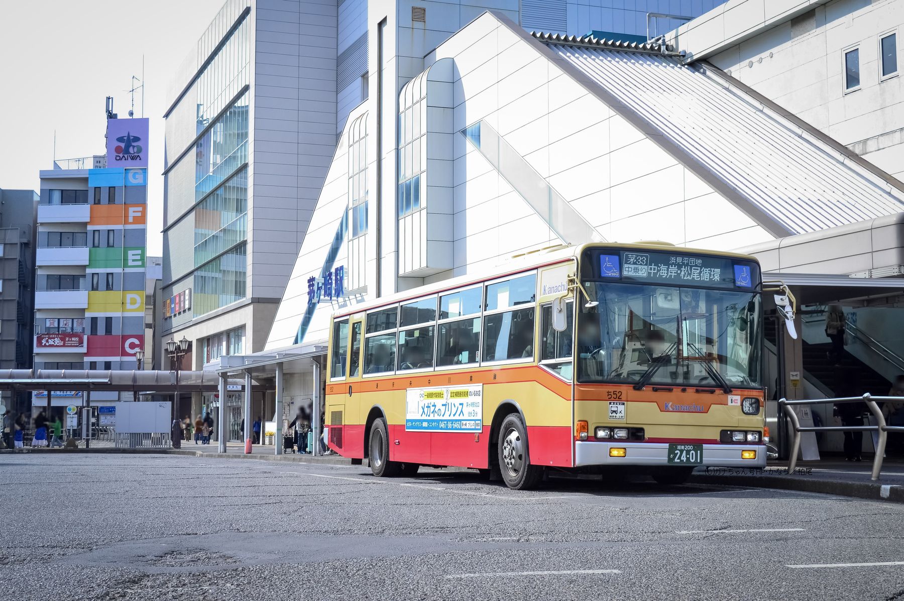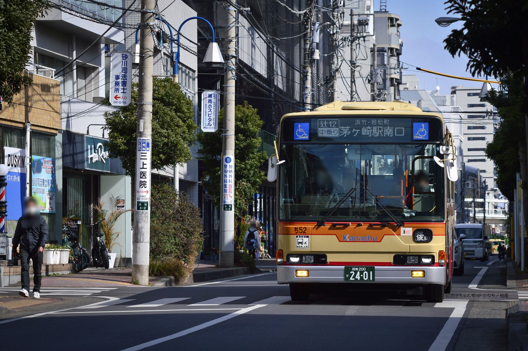 2005年12月投入のPJ-MP35JM(ち52)です。 2023年7月に平塚営業所から転入した1台です。平塚では2021年2月から休車となっていた車で2年半ぶりに再登録され運用復帰となりました。 新製当初は町田に配属されていましたが、2005年12月登録車は殆どが平成18年灯火器保安基準改正適合仕様でしたが、町田向けは大型フォグランプ、サイドリフレクター(反射板)無しの旧仕様です。 6月の中山営業所「な37」号車に続いての大フォグ仕様が復活となりました。また、座席は平塚時代に現行の青色モケットへ交換されています。 転入により旧ち52のPKG-MP35UMが引退し、茅ヶ崎のPJ-代は10台に増加、写真の車が茅ヶ崎の最古参車となっています。 写真は運行初日の辻堂駅や茅ヶ崎駅での記録です。町田からの転属履歴は以下の通りで平塚時代は湘南神奈交や神奈中西に在籍していた時期がありました。撮影 佐藤雄紀様