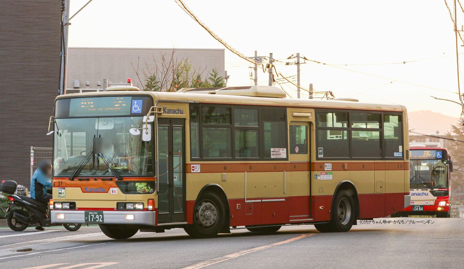 2014年1月投入のQKG-MP35FM(も114)です。 納車から半年が経った2014年6月から2019年3月までの約5年間、かなみん街の風景ラッピングが施されていた車です。 ラッピング解除後はフロントのかなみんマークがベビーカーマークへと張り替えられました。撮影 齋藤様 |